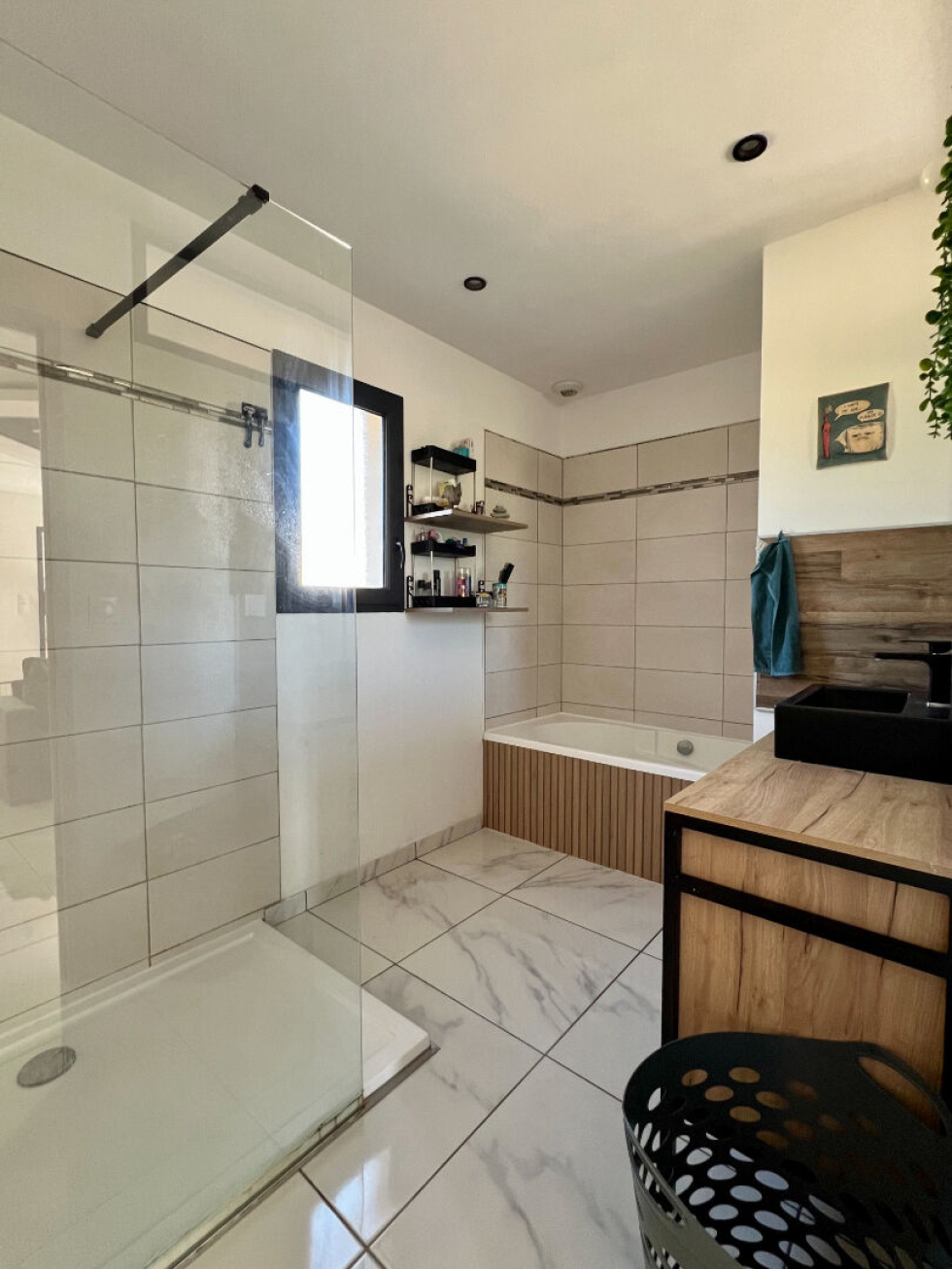 Villa récente de plain-pied avec jardin ? CarcèsSituée dans un quartier résidentiel très calme et à proximité du village de Carcès, cette villa contemporaine construite en 2021 offre tout le confort moderne dans un cadre agréable et verdoyant. Édifiée de plain-pied sur un terrain clos et plat de 1 200 m² avec un jeu de boules, elle se compose d'une lumineuse pièce de vie équipée de la climatisation réversible, d'une cuisine aménagée, un cellier, 3 chambres, ainsi que d'une salle de bains avec baignoire et douche. Son environnement privilégié, sa construction récente et son jardin spacieux en font un bien idéal pour une famille ou pour une résidence secondaire au calme.Copropriété de 8 lots - dont 8 lots habitation. (Pas de procédure en cours).Charges annuelles : 80.00 euros.