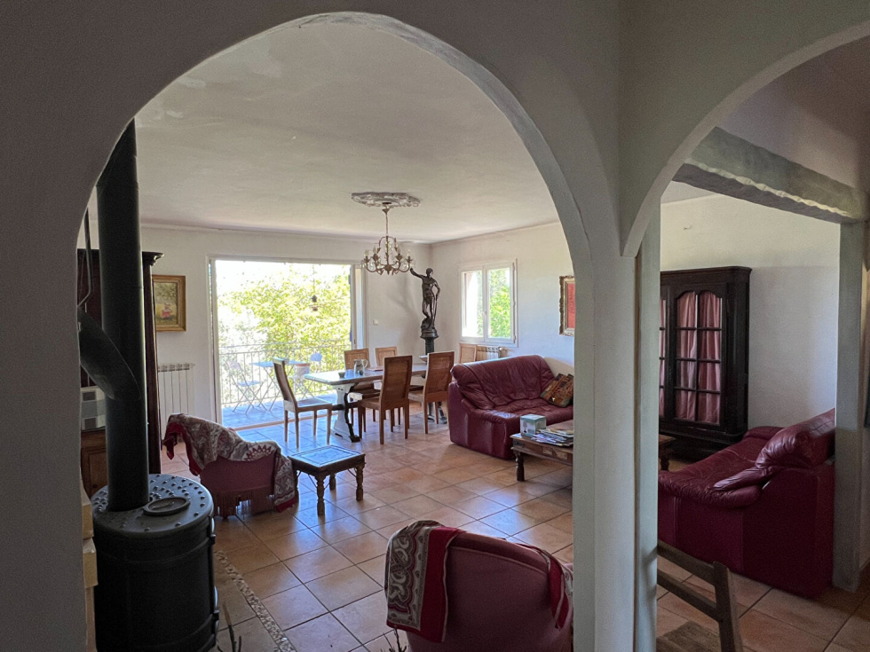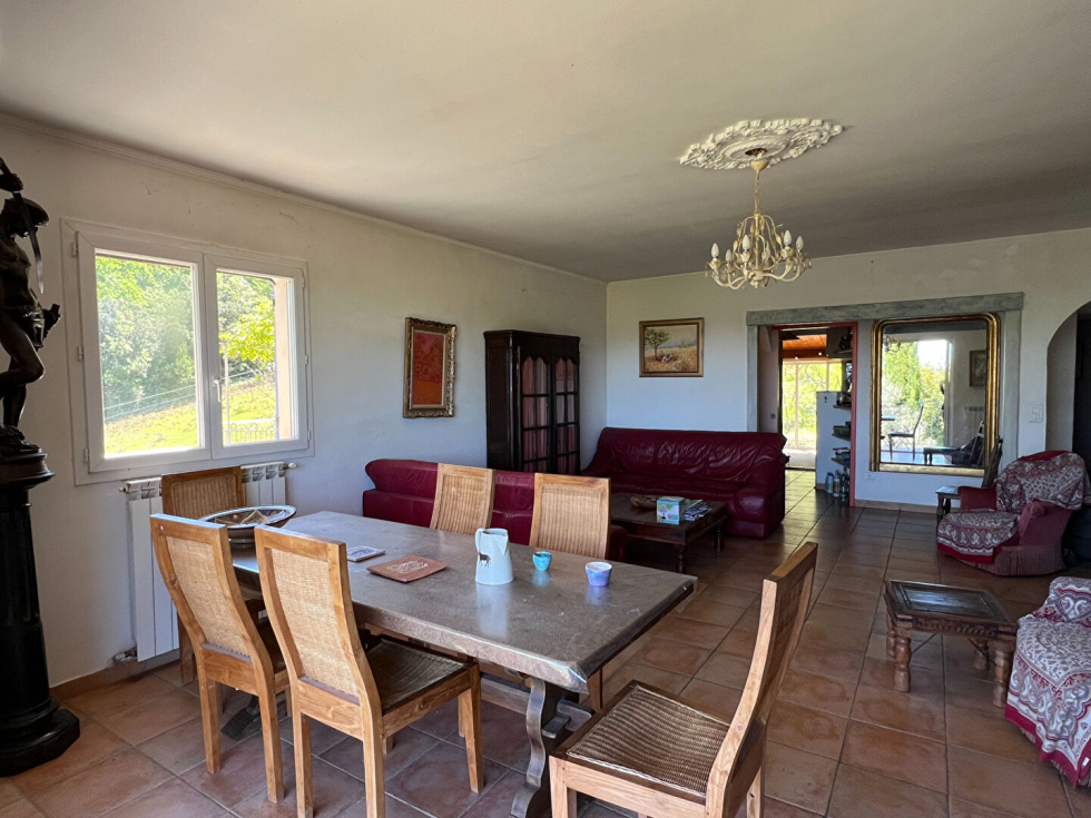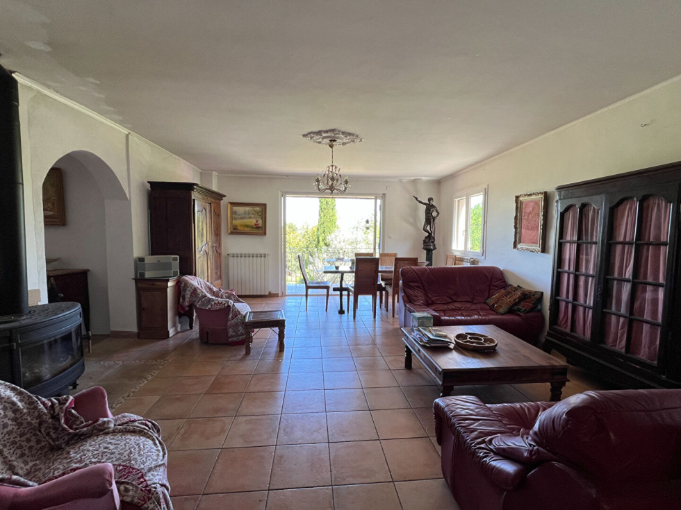 Propriété de charme proche de Cotignac, au calme absolu.Venez découvrir cette rare propriété nichée au coeur de la nature, sur un terrain exceptionnel de 27.768 m², agrémenté d'oliviers et offrant une vue dominante imprenable sans aucun vis-à-vis. Un véritable havre de paix pour les amoureux de la tranquillité et de l'authenticité provençale. La maison, édifiée sur trois niveaux, présente un fort potentiel et peut aisément être aménagée en deux appartements indépendants. Elle dispose :d'une pièce de vie chaleureuse avec poêle à granulés, d'une cuisine indépendante ouvrant sur une véranda, d'un salon avec poêle à bois, de cinq chambres dont une superbe suite parentale de 43 m² occupant le dernier niveau, de plusieurs salles d'eau et sanitaires.À l'extérieur, vous serez séduits par l'espace piscine avec son vaste bassin traditionnel et son pool house, à l'abri des regards. Un atelier, une serre ainsi qu'un carport complètent cet ensemble aux multiples atouts.Un bien rare à découvrir sans tarder, idéal pour une grande famille, une résidence secondaire de charme ou un projet de location saisonnière.